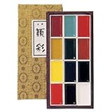 吉祥 顔彩墨彩画セットNo.2 ![]() 価格: 9,660円 レビュー評価: レビュー数: 顔料に、天然高級デンプン質と膠分を加え、練り混ぜ角皿に入れて乾燥させたものです。日本画材料の中では特に普及しています。色調は透明型淡彩色で、俳画、南画、日本画調繊細画などのほか、ハガキなどの挿し絵、岩絵具の下塗り、写生用などに使用します。 【セット内容】顔彩18色上製、巻紙(運筆用紙)、筆、青墨、文鎮、硯、下敷、 絵皿3枚※表示の色見本はイメージカラーです。ブラウザの設定などにより、実際とは多少 異なる場合があります。 |